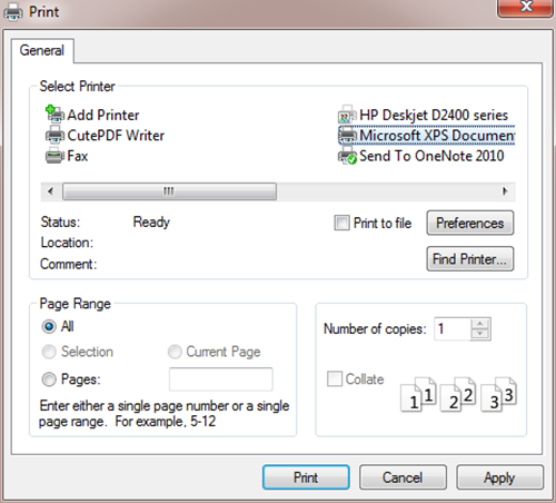 Cabe mencionar que, si la impresora seleccionada requiere todavía de la interacción del usuario, esta continuará (para indicar el nombre de un archivo .xps o .pdf por ejemplo).
